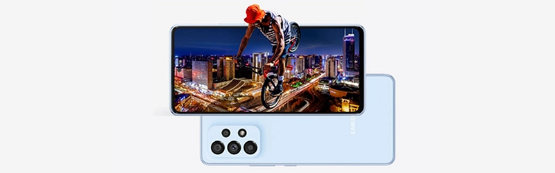 در نمای روبهرویی گوشی Samsung Galaxy A53 5G از صفحهنمایش با ابعاد 6.46 اینچ و رزولوشن 1080×2400 پیکسل از نوع Super AMOLED بهره برده است. صفحهنمایشی که با توجه به توانایی نمایش 407 پیکسل در هر اینچ و نرخ بروزرسانی 120 هرتز، کیفیت بسیار خوبی را ارائه میکند. در قسمت پشتی یک سنسور دوربین اصلی با رزولوشن 64 مگاپیکسل از نوع عریض در کنار سنسور 12 مگاپیکسل از نوع فوق عریض Ultrawide و دو سنسور با رزولوشن 5 مگاپیکسل از نوع ماکرو (برای ثبت تصاویر از فاصله نزدیک) و سنجش عمق، سنسورهای دوربین چهارگانه سامسونگ Galaxy A53 5G SM-A536E/DS را تشکیل میدهند. برای دوربین سلفی نیز یک سنسور با رزولوشن 32 مگاپیکسل در نظر گرفته شده است. حضور پردازنده قدرتمند اگزینوس 1200 اختصاصی شرکت سامسونگ سبب شده تا این گوشی در اجرای بازی و نرمافزارهای کاربردی، عملکرد بسیار خوب و قابل قبولی را به نمایش بگذارد. باتری قدرتمند با میزان ظرفیت 5000 میلیآمپر ساعت و شارژر با توان 25 وات مجهز به تکنولوژی شارژ سریع از دیگر مشخصات در نظر گرفته شده برای سامسونگ گلکسی A53 هستند.