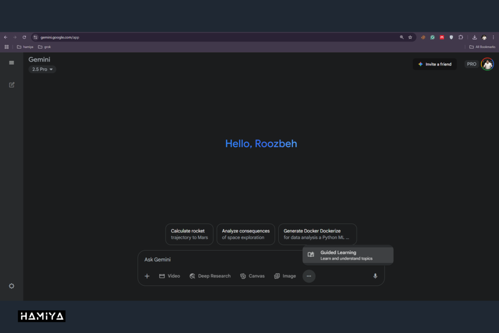 با ورود به محیط Gemini و انتخاب حالت guided learning، کاربر میتواند به صورت تعاملی شروع به یادگیری موضوعات موردنظر خود کند.