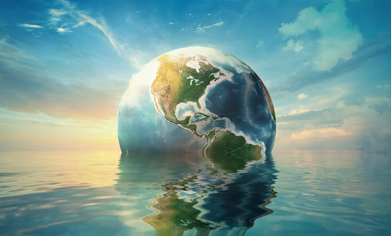در حالی که بیشتر سطح زمین توسط اقیانوس‌ها پوشیده شده است، این اقیانوس‌ها تنها بخش کوچکی از جرم سیاره را تشکیل می‌دهند. جرم اقیانوس‌های کره زمین 1.37 × 10 21 کیلوگرم تخمین زده می‌شود که 0.023٪ از کل جرم زمین، 6.0 × 10 24 کیلوگرم است. تخمین زده می‌شود که 5.0 × 10 20 کیلوگرم آب اضافی در یخ، دریاچه‌ها، رودخانه‌ها، آب های زیرزمینی و بخار آب اتمسفر وجود داشته باشد. مقدار قابل توجهی آب نیز در پوسته، گوشته و هسته زمین ذخیره می‌شود. برخلاف H 2 O مولکولی که در سطح یافت می‌شود، آب در داخل کانی‌های هیدراته یا به‌ عنوان مقادیر ناچیز هیدروژن متصل به اتم‌های اکسیژن در کانی‌های بی آب وجود دارد. اتم‌های اکسیژن در کانی‌های بی آب سیلیکات‌های هیدراته روی سطح، آب را به داخل گوشته در مرزهای صفحه همگرا منتقل می‌کنند، جایی که پوسته اقیانوسی در زیر پوسته قاره فرورانش می‌کند. در حالی که تخمین کل محتوای آب گوشته به دلیل نمونه‌های محدود دشوار است، تقریباً سه برابر جرم اقیانوس‌های زمین می‌تواند در آنجا ذخیره شود. به طور مشابه، هسته زمین می‌تواند حاوی چهار تا پنج اقیانوس هیدروژن باشد.