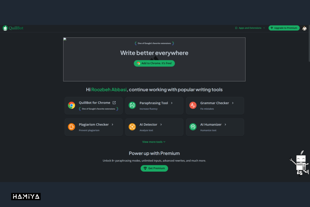 QuillBot AI علاوه بر دسترسی از طریق وبسایت، به صورت یک افزونه مرورگر کروم نیز در دسترس است. این افزونه به ویژه برای کاربرانی که از ابزارهای تحت وب مانند دروپال یا وردپرس استفاده میکنند، بسیار کاربردی است. همچنین، QuillBot میتواند به عنوان یک پلاگین مایکروسافت ورد نصب شود. افزون بر این، امکان افزودن QuillBot به مرورگرهای Apple Safari، Microsoft Edge و حتی دستگاههای macOS نیز فراهم شده است، که انعطافپذیری بالایی را در استفاده از این ابزار برای کاربران فراهم میآورد.
