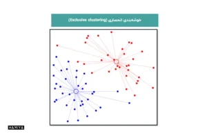 - خوشهبندی انحصاری (Exclusive clustering): این شکل از گروه بندی دادهها مشخص میکند که یک نقطه داده فقط میتواند در یک خوشه وجود داشته باشد.