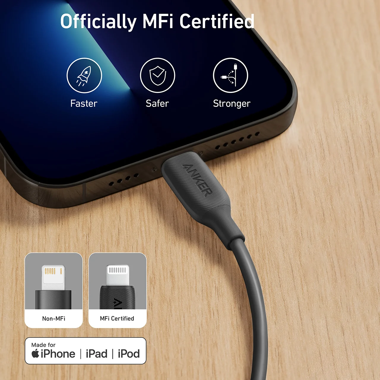 با دوام و مقاوم, پشتیبانی از شارژ سریع, دارای گواهینامه MFi تایید از کمپانی اپل, مقاوم در برابر خم شدگی تا 25000 بار
