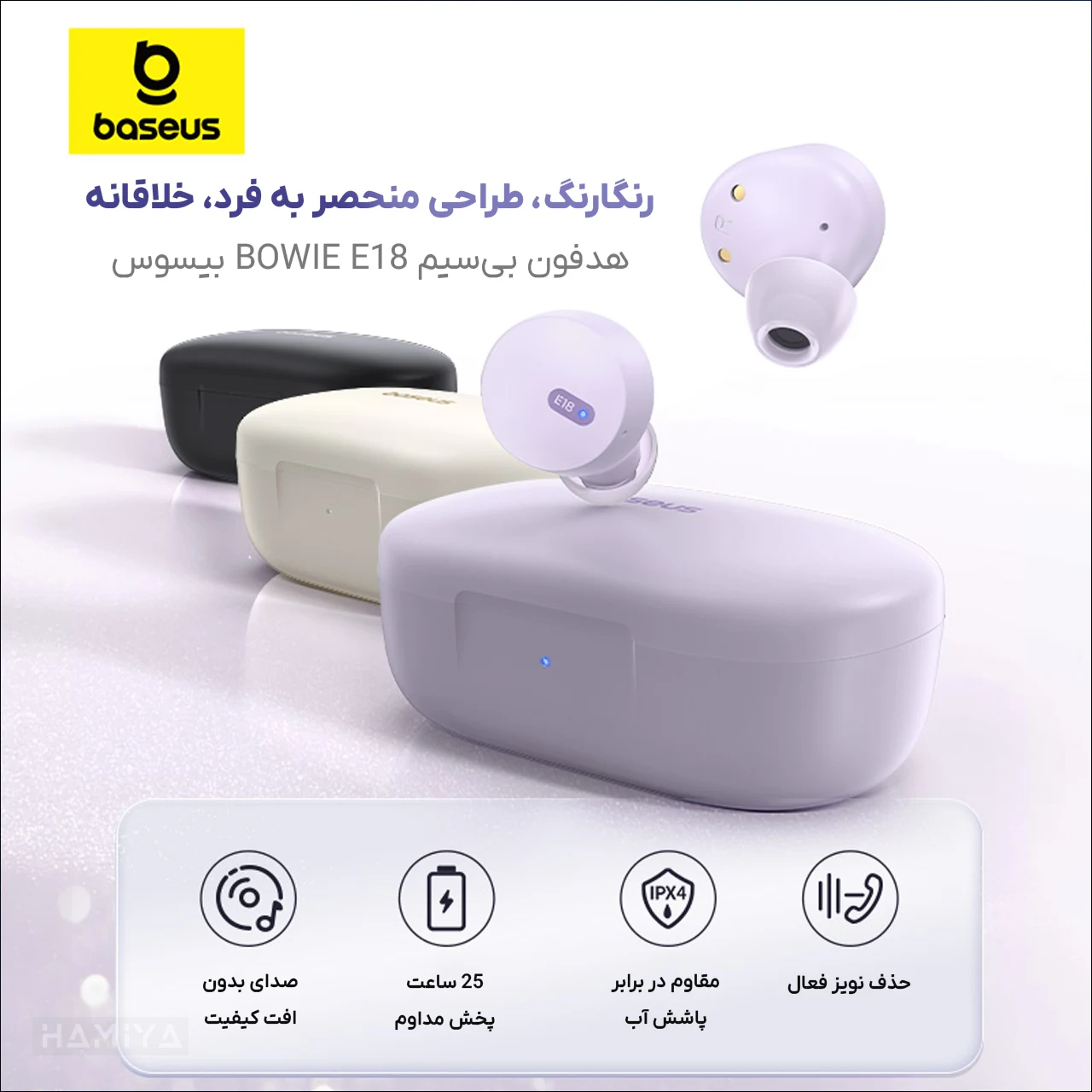 مشخصات هندزفری بی سیم بیسوس مدل Bowie E18 با عمرباتری 25 ساعت و بلوتوث ورژن 5.3