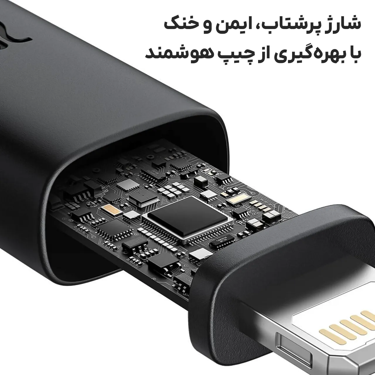 ⚡〔سازگاری USB به لایتنینگ〕: اتصال USB به لایتنینگ این کابل، آن را با طیف وسیعی از شارژرها، پاوربانک‌ها و پورت‌های رایانه سازگار می‌سازد. این کابل برای شارژ انواع آیفون، آیپد و سایر دستگاه‌های دارای پورت لایتنینگ مناسب است و در کنار شارژ سریع، انتقال داده با سرعت بالا را نیز در اختیار شما قرار می‌دهد. این ویژگی‌ها باعث شده که کابل USB به لایتنینگ بیسوس یک گزینه کاربردی برای استفاده روزمره و سفر باشد.