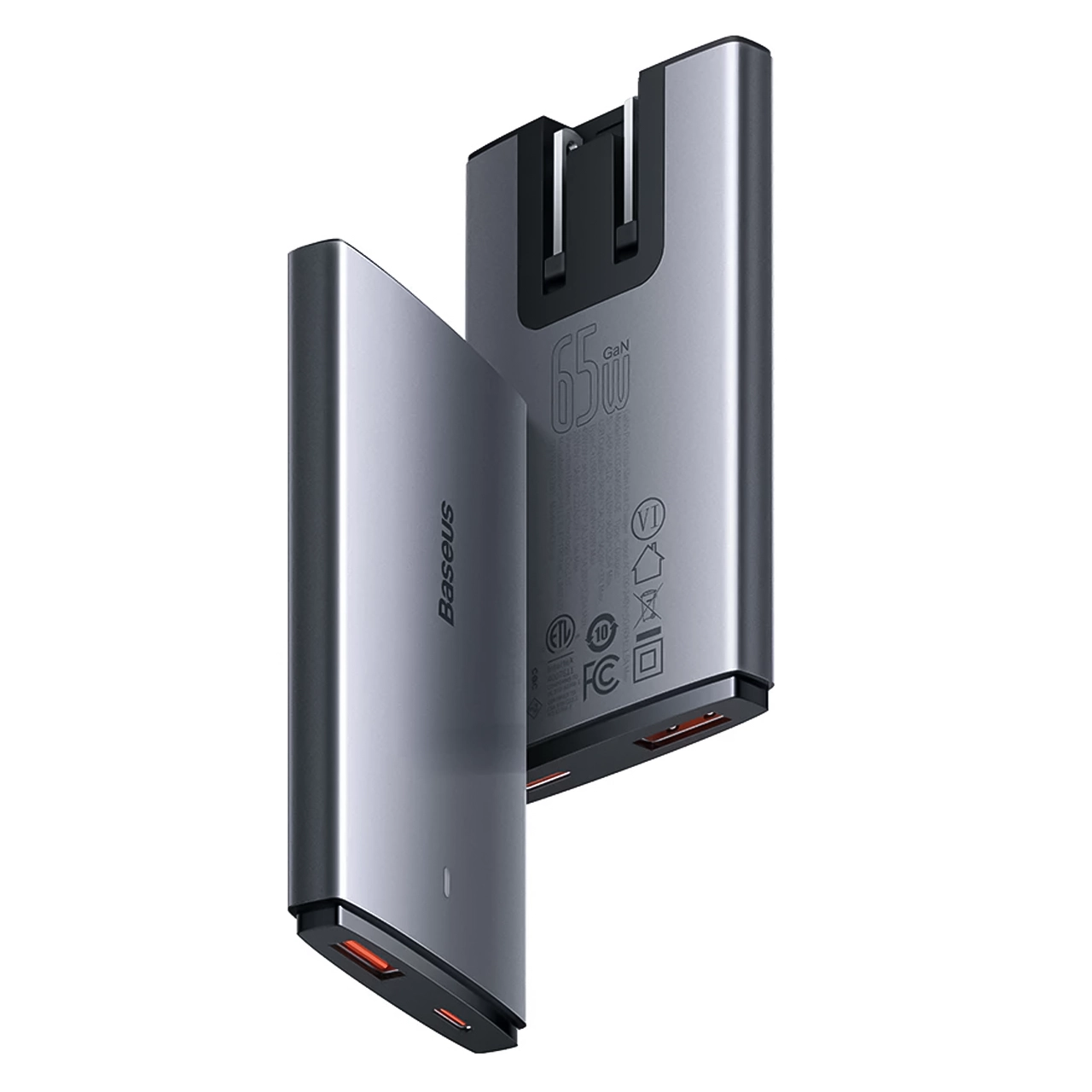 مشخصات شارژر دیواری بیسوس مدل CCGAN65S5-OE با توان خروجی 65 وات + درگاه USB و Type-C
