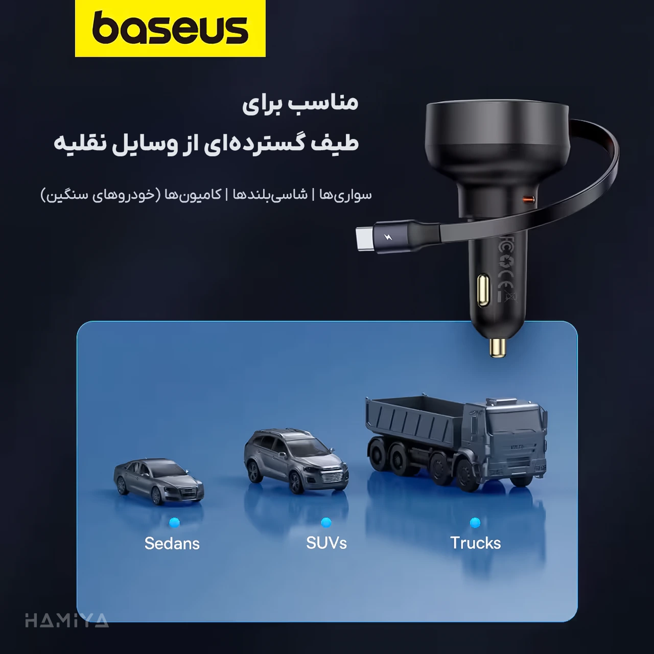 مشخصات شارژر فندکی خودرو بیسوس مدل CCTXP-CC با توان خروجی 60 وات