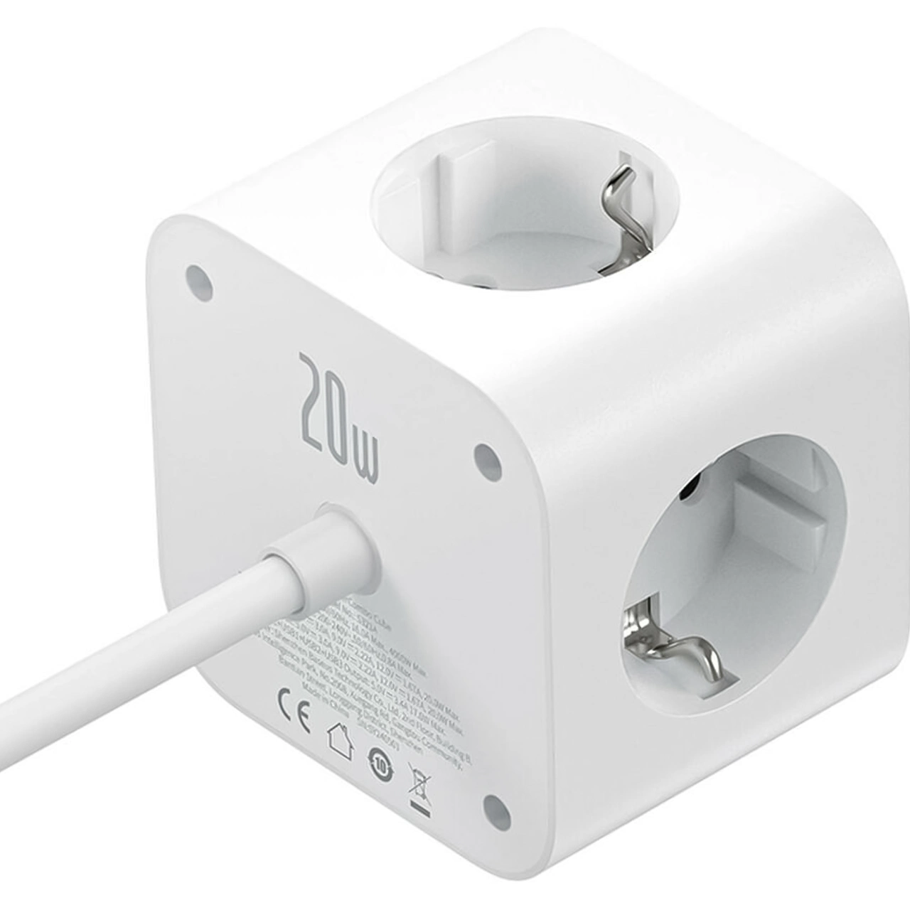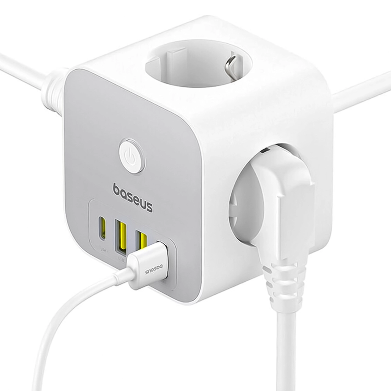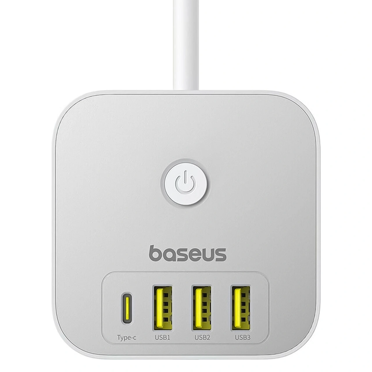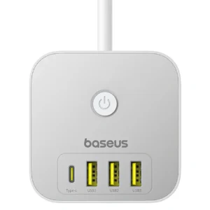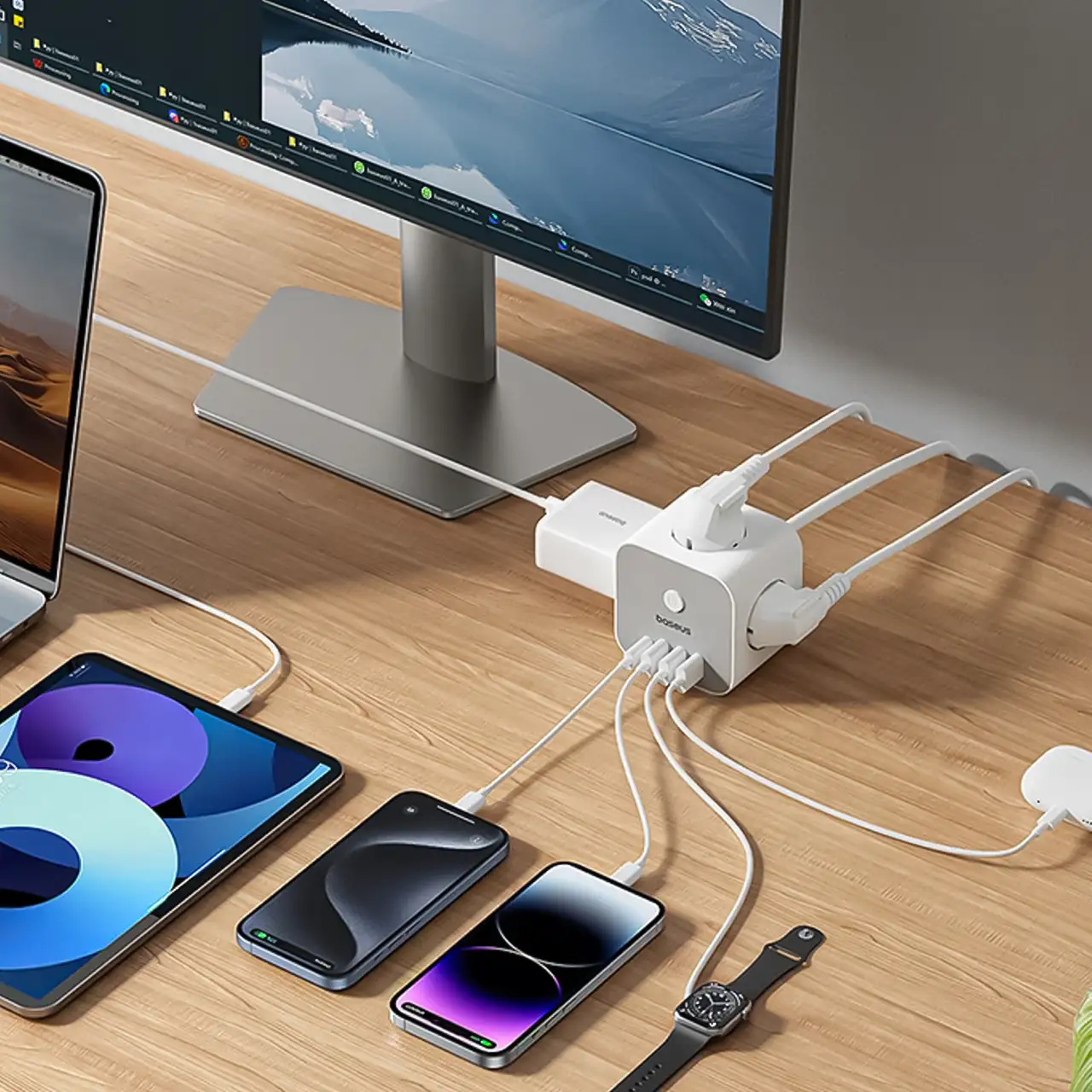 مشخصات شارژر رومیزی بیسوس مدل S321A با توان خروجی 20 وات، شارژ سریع 4 دستگاه همزمان و 3 عدد پریز برق