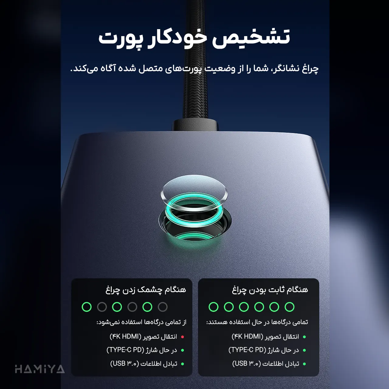 PD: 100W (Max), VGA: 1080P@60Hz, (حداکثر) HDMI: 4K@60Hz, USB 3.0: 5Gbps, USB 3.0: 5V/0.9A