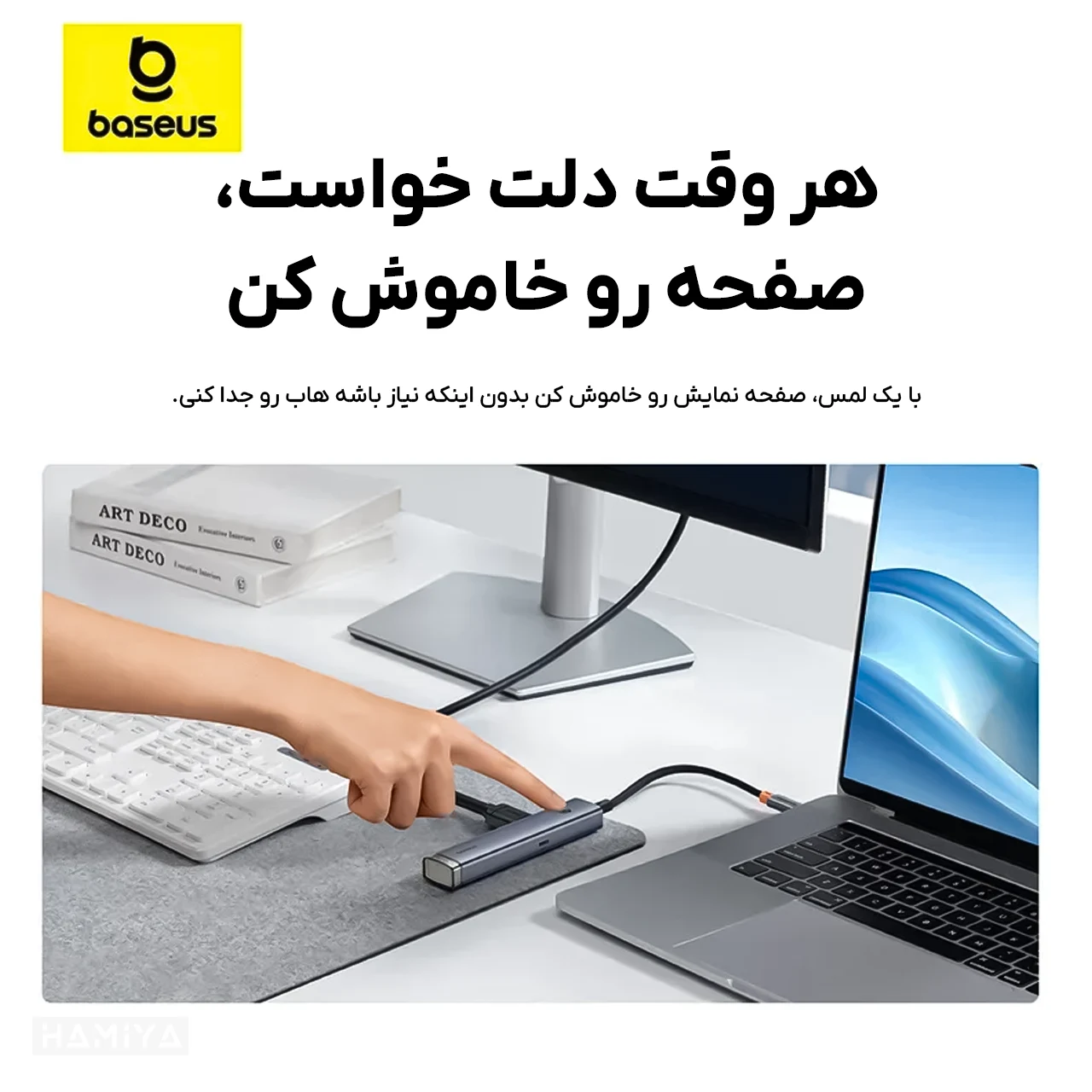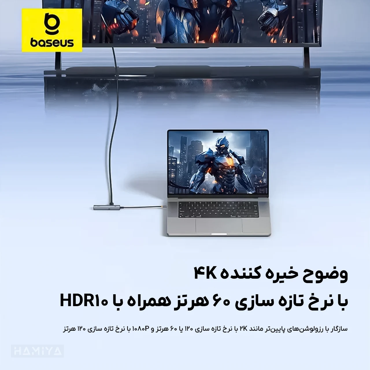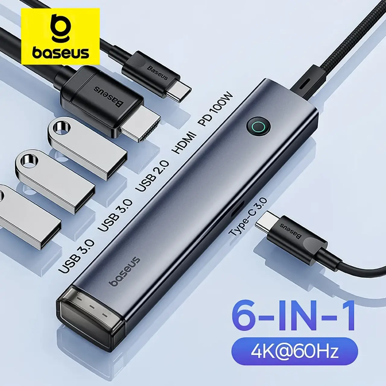 مشخصات هاب 6 پورت تایپ سی بیسوس مدل BS-OH166 با 2 درگاه USB 3.0، درگاه USB 2.0، درگاه HDMI 4K و 2 درگاه تایپ سی