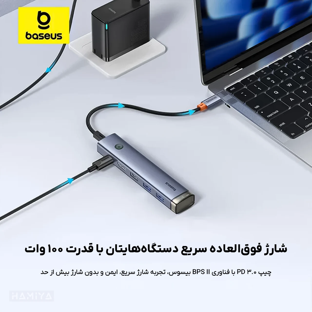 PD: 100W (Max), (حداکثر) HDMI: 4K@60Hz, USB 3.0: 5Gbps, USB 3.0: 5V/0.9A