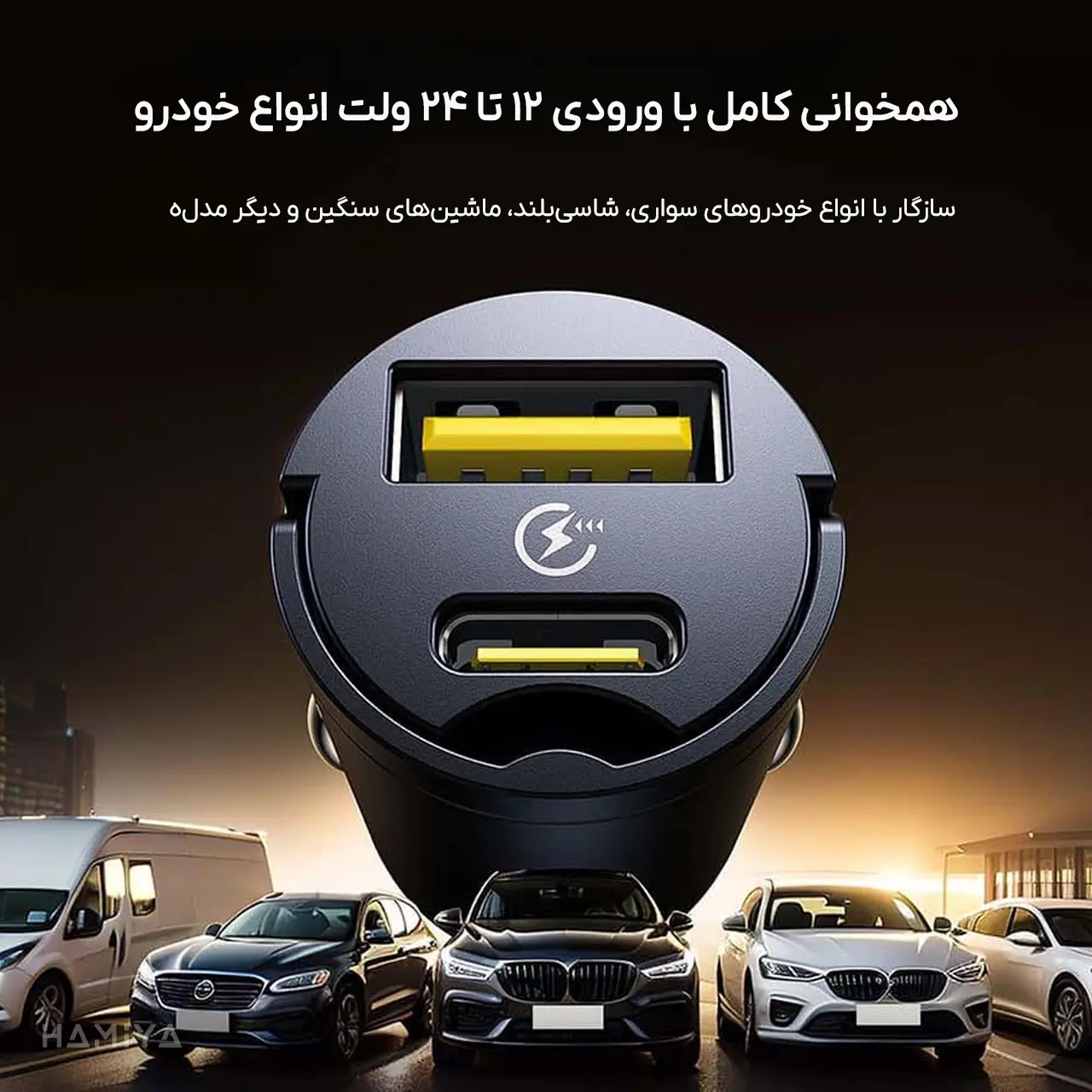 دارای چراغ نشانگر, دارای سیستمهای امنیتی MultiProtect: از دستگاه شما در برابر نوسانات برق و گرمای بیش از حد محافظت میکند., طراحی با دستگیره برای بیرون آوردن آسان از فندکی خودرو