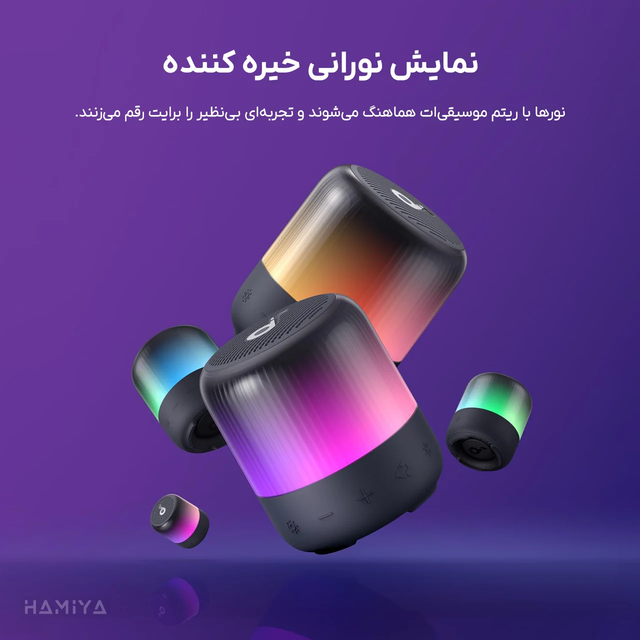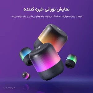 امکان شاخصی سازی حالتهای نورپردازی در نرمافزار Soundcore, امکان شخصی سازی اکولایزر در نرمافزار Soundcore, حالتهای نورپردازی هماهنگ با ضرب موزیک, دارای بند آویز برای حمل آسان, دارای فناوری PartyCast 2.0 جهت اتصال تا 100 عدد اسپیکر هم نوع, صدای 360 درجه