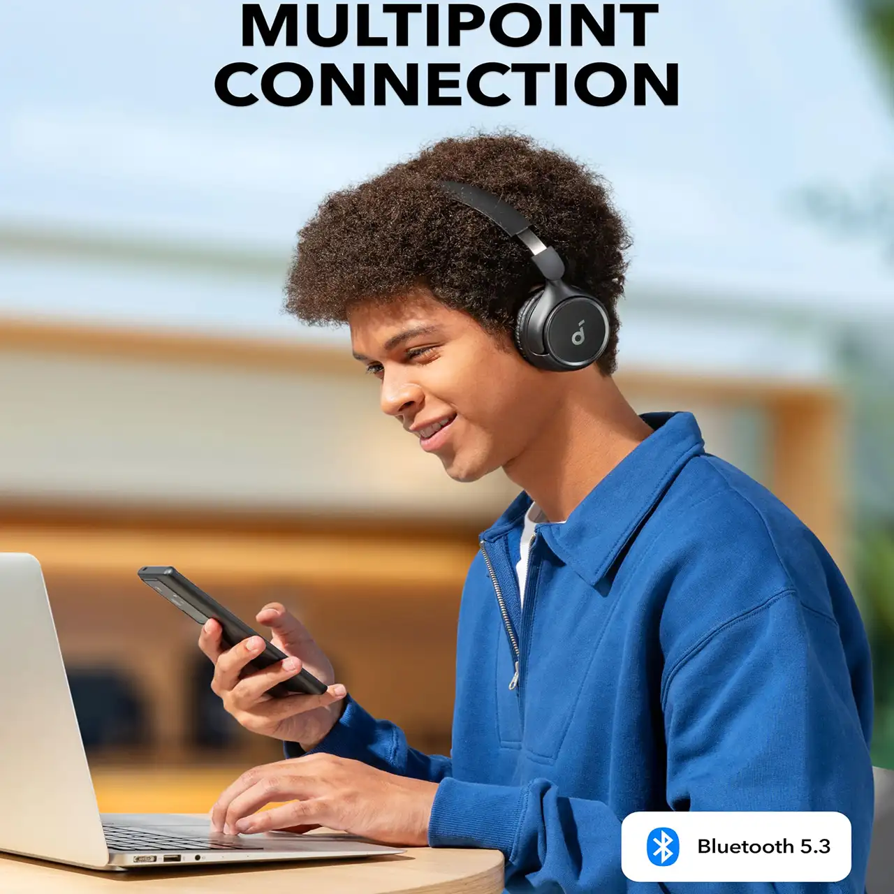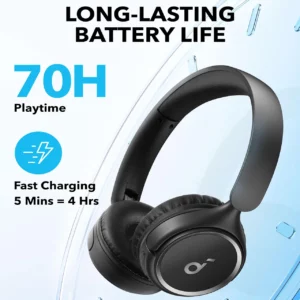 4 ساعت پخش موسیقی با 5 دقیقه شارژ, پدهای بسیار نرم و راحت, دارای دکمه های تنظیم صدا، امکان پاسخگویی به تماسها، توقف و پخش موسیقی, دارای نرمافزار اختصاصی Soundcore, طراحی تاشو برای حمل آسان, قابلیت اتصال همزمان به دو دستگاه