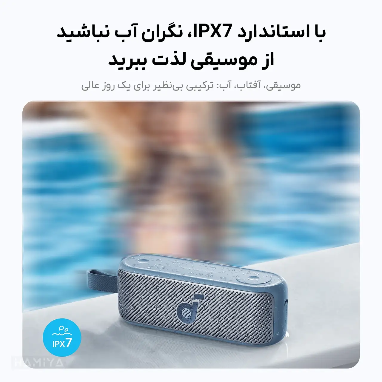 اتصال بیسیم (TWS) دو عدد از این اسپیکر برای صدای استریو, امکان شخصی سازی اکولایزر در نرمافزار Soundcore, دارای استاندارد Hi-Res, دارای بند آویز برای حمل آسان, دارای فناوری BassUp جهت افزایش عمق و وضوح بیس