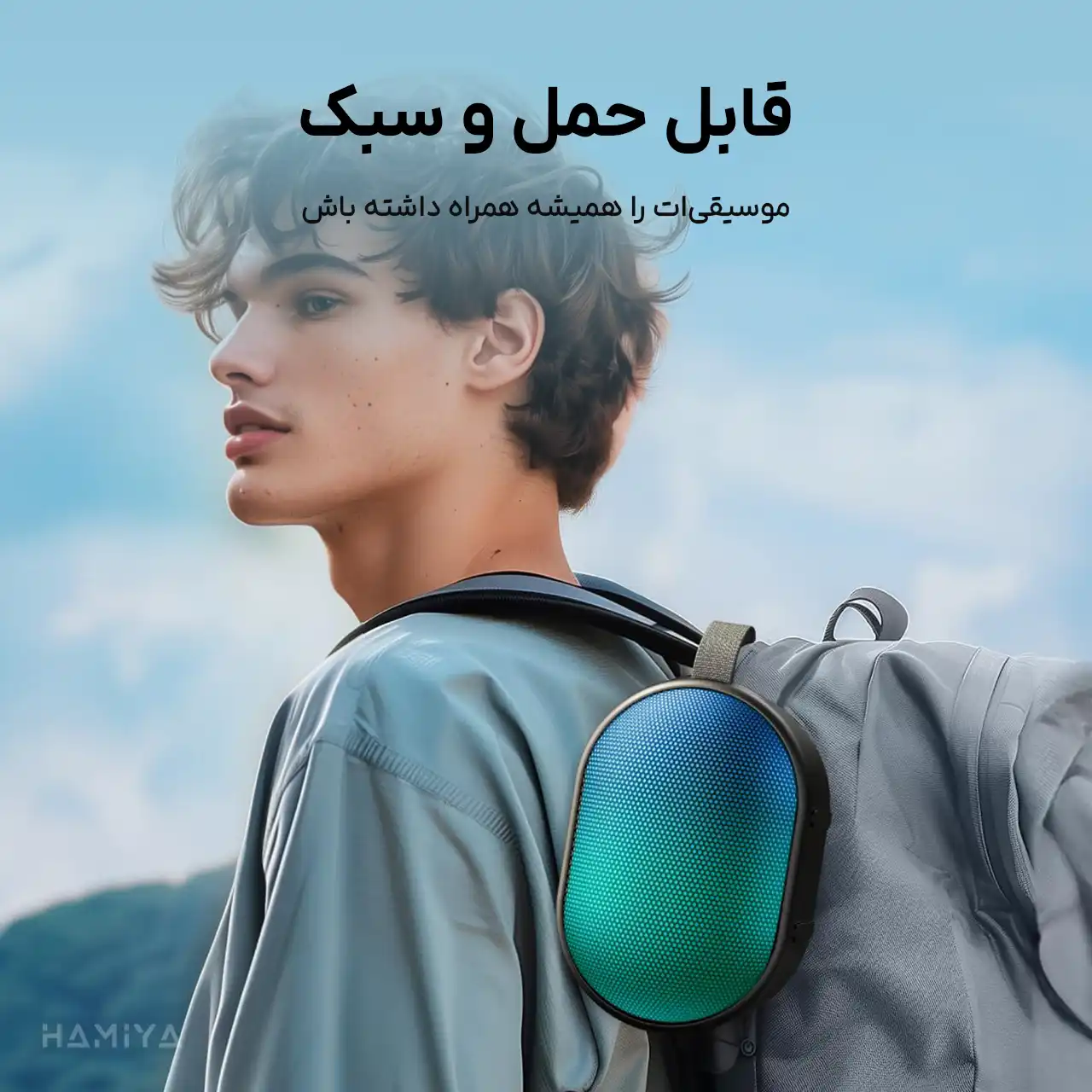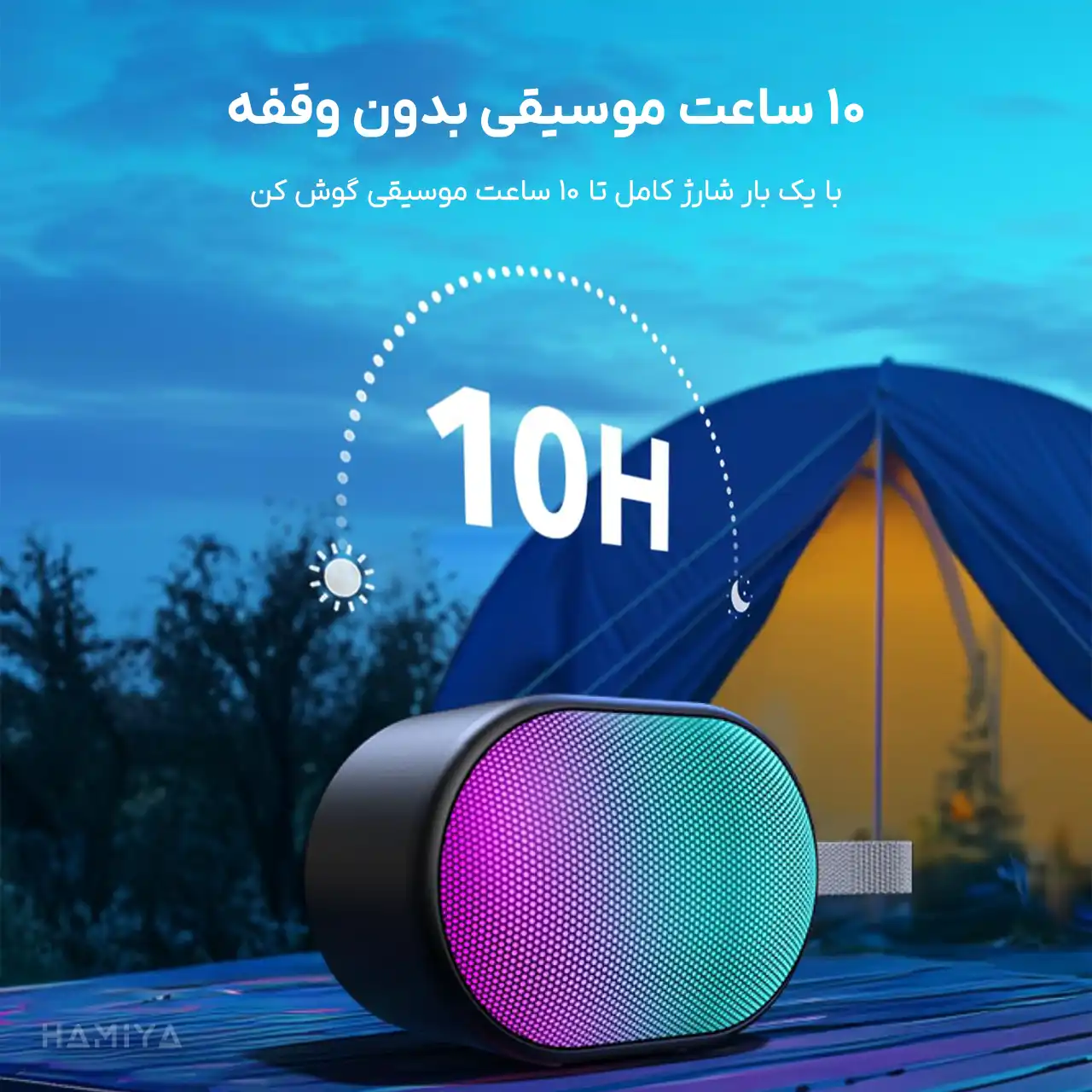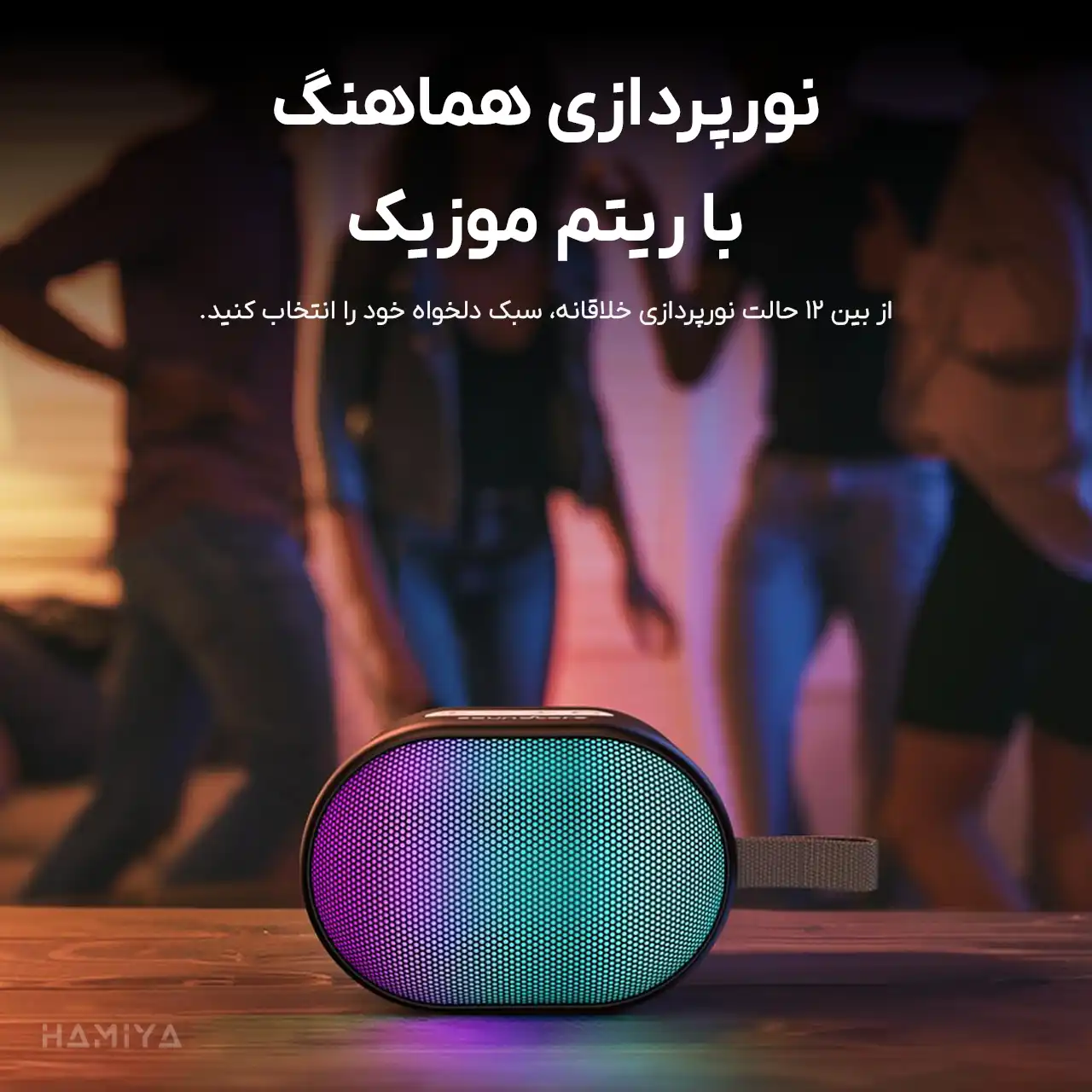 12 افکت نورپردازی از پیش تعریف شده, اتصال بیسیم (TWS) دو عدد از این اسپیکر برای صدای استریو, پشتیبانی از کارت حافظه Micro SD, پشتیبانی از ورودی AUX، بدون افت کیفیت صدا, حالتهای نورپردازی هماهنگ با ضرب موزیک, دارای بند آویز برای حمل آسان