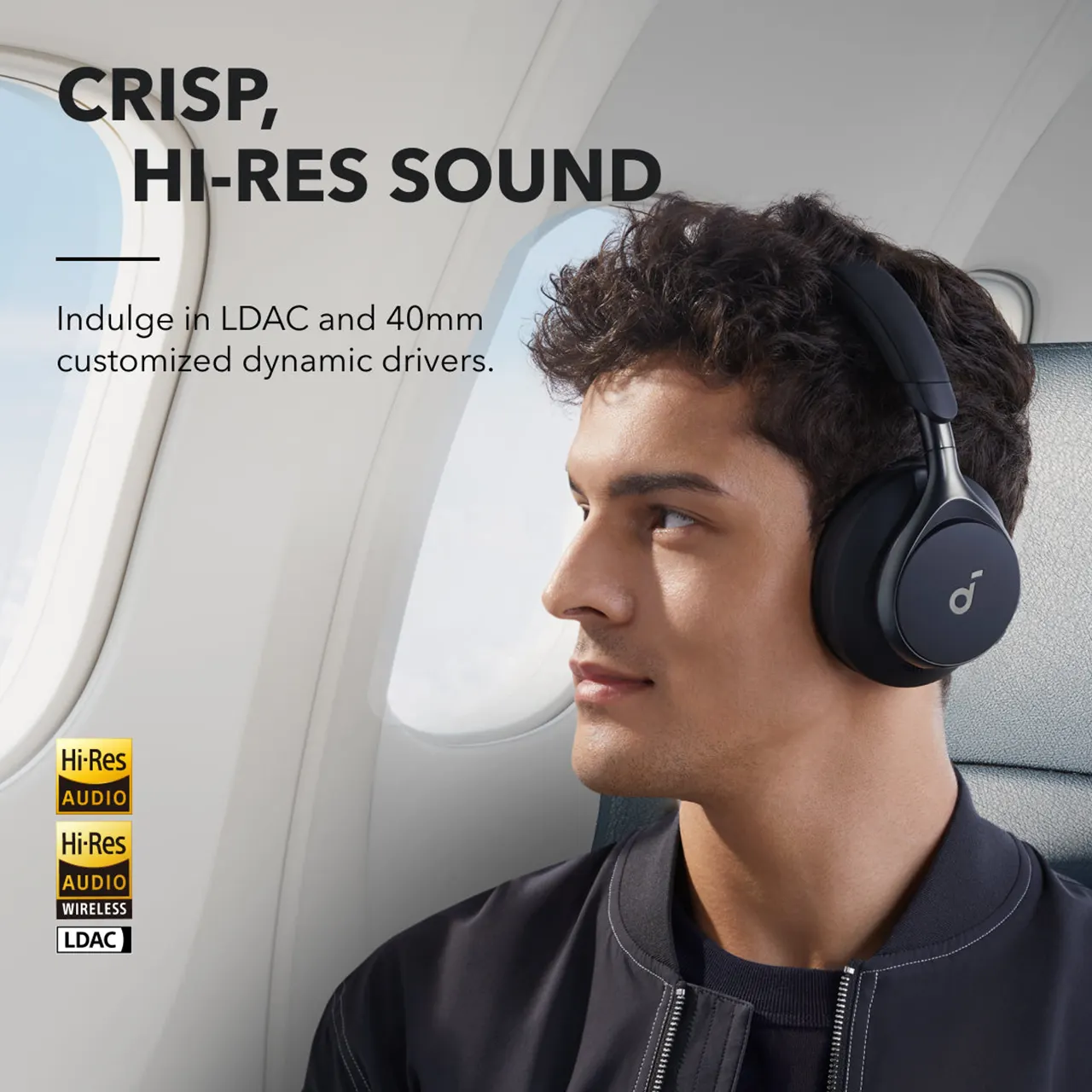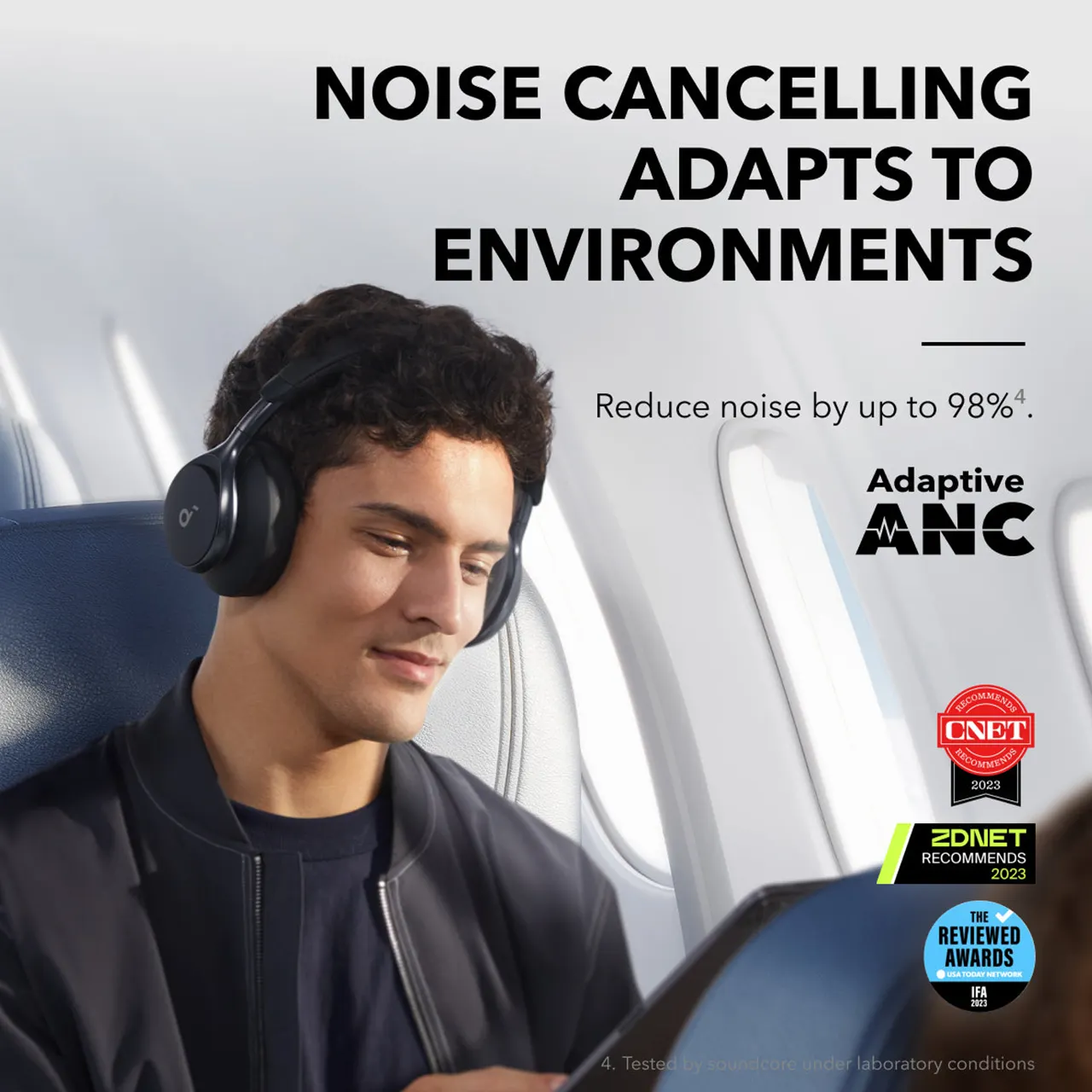 4 ساعت پخش موسیقی با 5 دقیقه شارژ, پدهای بسیار نرم و راحت, دارای حالت Transparency برای شنیدن صدای محیط اطراف, دارای دکمه های تنظیم صدا، امکان پاسخگویی به تماسها، توقف و پخش موسیقی, دارای نرمافزار اختصاصی Soundcore, طراحی تاشو برای حمل آسان, قابلیت اتصال همزمان به دو دستگاه, دارای استاندارد Hi-Res, فناوری Adaptive ANC, فناوری هوش مصنوعی برای کاهش نویز حین تماس, قابلیت انتخاب حالتهای مختلف نویز کنسلینگ از طریق نرمافزار Soundcore, مجهز به سنسور تشخیص هوشمند پوشیدن